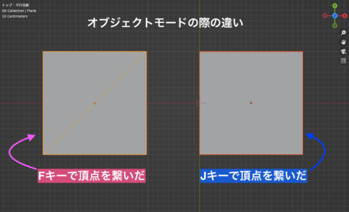 ただ、面のある頂点を繋ぎたい場合は Jキーの方が良い