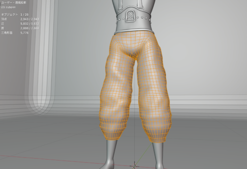 今回はズボンだけなのでそこまでポリゴン数も増えないので