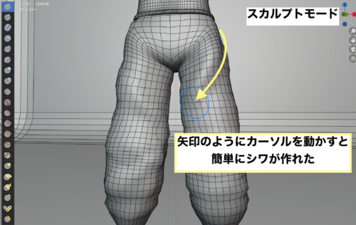 スカルプトモードでは簡単にシワが作れて個人的にはよかったのですが