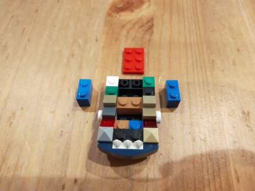 先に作っておいた上の歯のレゴと頭部を合体させます!